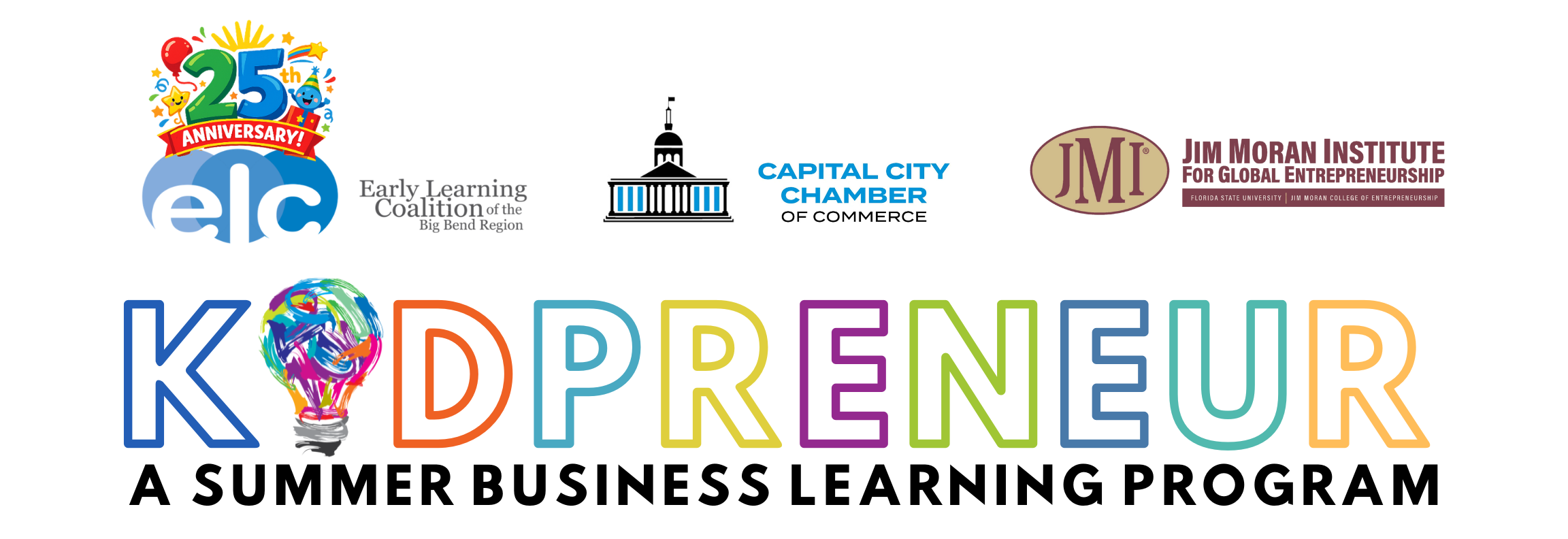 The Kidpreneur Summer Business Learning Program is a free, engaging program designed for Big Bend children aged 8-12 who are ready to explore the world of entrepreneurship. Hosted by ELC of the Big Bend, in partnership with the Capital City Chamber of Commerce and with support from the Jim Moran Institute for Global Entrepreneurship, this unique summer experience helps children tap into their creativity, strengthen academic skills, and build real-world confidence – all while having a whole lot of fun!